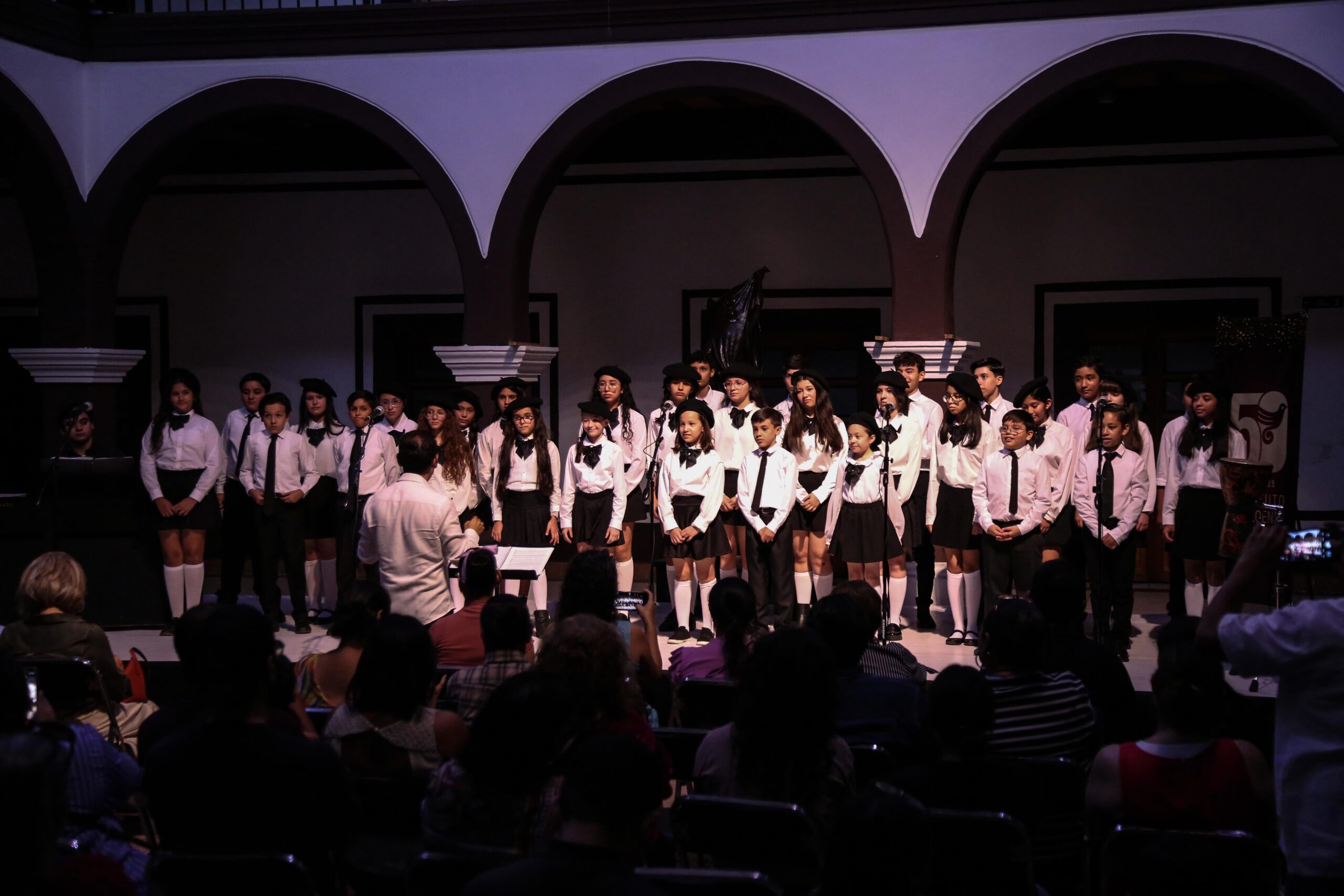 Culiacán, Sin.- En el patio del Centro Sinaloa de las Artes Centenario, la Escuela Superior de Música del Instituto Sinaloense de Cultura ofreció un Recital de Coros, a cargo de alumnos del Mtro. Mario Velarde, con la participación del Mtro. Alfredo Chacón como pianista acompañante, y de la maestra Claudia Ruiz encargada de Expresión Corporal.