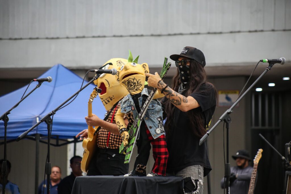 Previamente, y aun con los barruntos de lluvias y la ocasional llovizna que hizo temer lo peor, y ante una multitud creciente, abrió la jornada final Pakito Punk, también de Ensenada, con un espectáculo de títeres de boca (bocón) que interactuó con niños y adolescentes, con canciones educativas y mensajes de respeto a la naturaleza, de cuidado del agua y del bullying, en títulos como “Azúcares”, “Gota agota”, “Matemáticas”, “Planeta”, “Que no te molesten”.