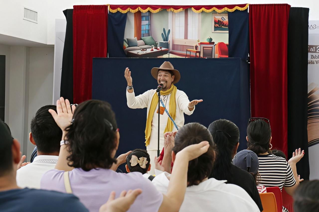 La jornada inició a las 10:00 horas con la presentación del cuentacuentos Pepe Veloz, quien ofreció “Puros cuentos chinos”, un espectáculo lleno de humor y creatividad que mantuvo la atención de niñas y niños desde el primer momento.