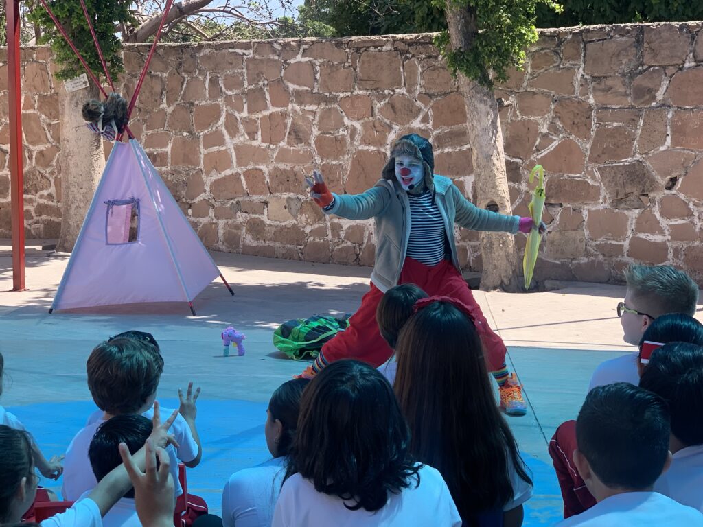 En su presentación, el bailarín convertido en clown invitó a los pequeños a hablar de las emociones, uno a uno fueron mencionando a la alegría, la tristeza, el miedo, el coraje, la ira, sentimientos por los que todos han pasado y los exhortó a abrazarlas en el pecho, invitándolos a que, si sienten que no pueden hacerlo, que se acerquen a un ser querido que los ayudará a abrazar dicha emoción.