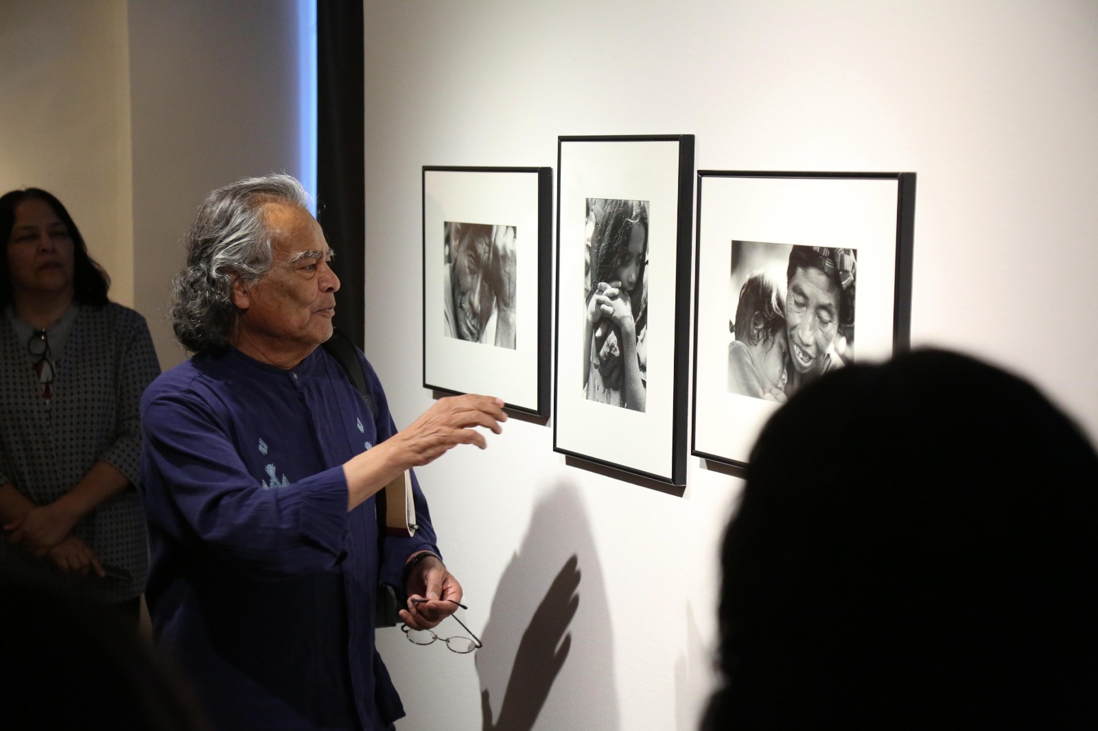 Al recorrer la sala, seguido por el público, el maestro Valtierra comentó las imágenes —que abarcan desde escenas callejeras y celebraciones populares hasta crisis sociales—, todas ellas resultado de su compromiso diario con la entrega de material a los distintos medios en que laboró a lo largo de cinco décadas en México y otros países latinoamericanos.