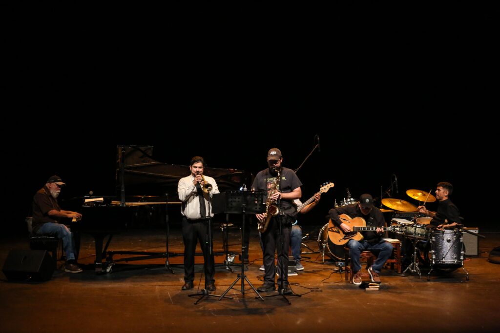 Culiacán, Sin.- Tres bandas de jazz participaron la noche del viernes en el Encuentro de Jazz, organizado en el marco del Festival Cultural Sinaloa 2025, esta vez en el escenario del Teatro Pablo de Villavicencio, donde los asistentes saborearon el ritmo sincopado y las improvisaciones de tres experimentadas bandas, Alan González Quartet, de Culiacán; Zumbador, de Mazatlán, y Ensenada Jazz, la más longeva.