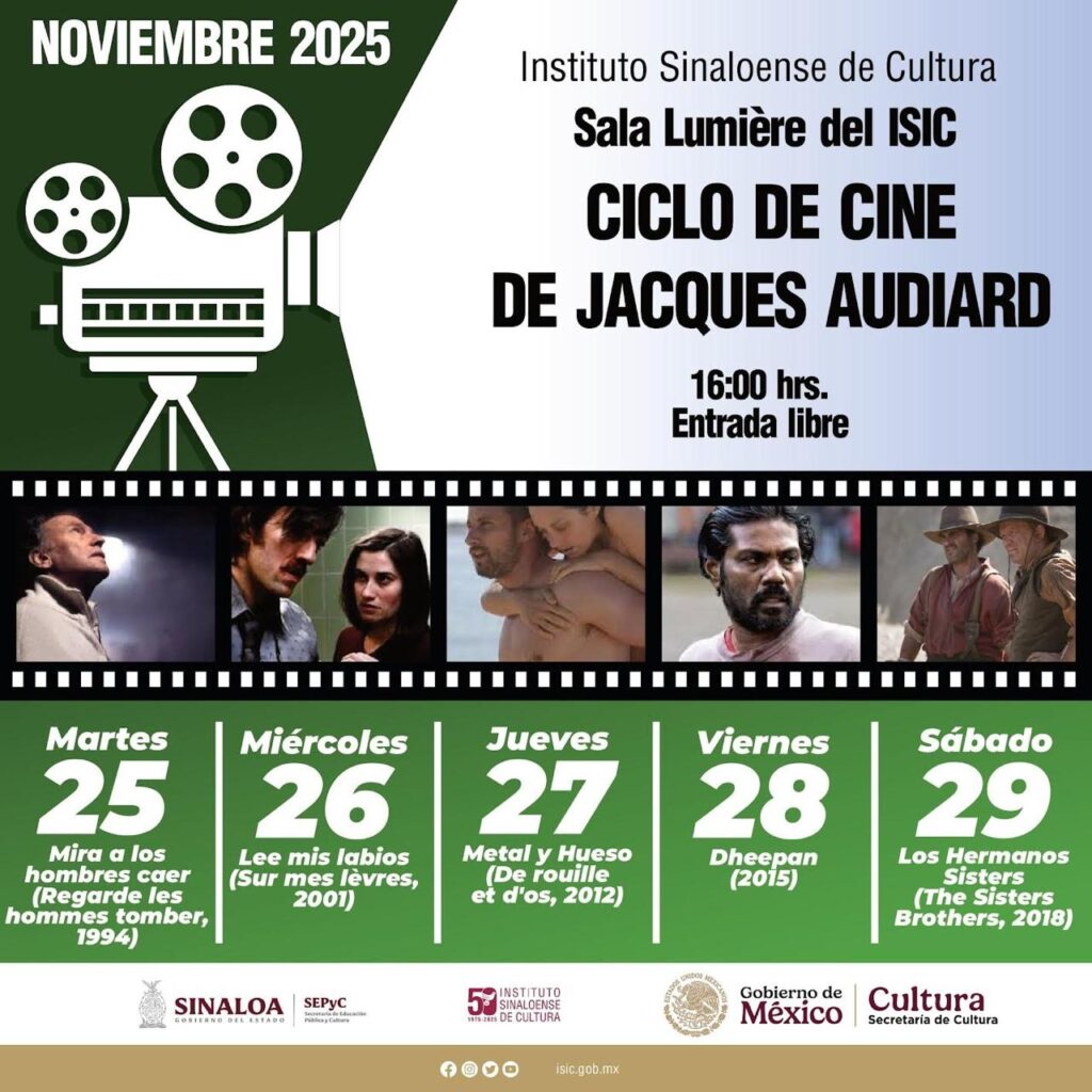 Culiacán, Sin.- El Instituto Sinaloense de Cultura invita al Ciclo de cine dedicado al cineasta francés Jacques Audiard, uno de los directores contemporáneos más respetados y laureados de Europa, con cinco funciones en la Sala Lumiére, del martes 25 al sábado 29 de noviembre, a las 16:00 horas, con entrada libre.