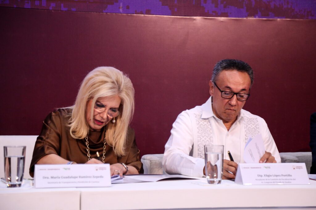 El acuerdo fue signado en un acto realizado en el patio del Museo de Arte de Sinaloa, por la Dra. María Guadalupe Ramírez Zepeda, secretaria de Transparencia y Rendición de Cuentas y el Dr. Juan Salvador Avilés Ochoa, director general del ISIC, con la presencia del Dip. Eligio López Portillo, por el Congreso del Estado; la Lic. Mayra Gisela Peñuelas, subsecretaria de Transparencia y Contraloría Social; Mtro. Rodolfo Díaz Fonseca, director de Promoción y Difusión del ISIC y representante del jurado del Concurso de Transparencia en Corto Sinaloa 2025 y el Ing. Javier Llausás Magaña, jurado del Premio de Contraloría Socia, entre otros.