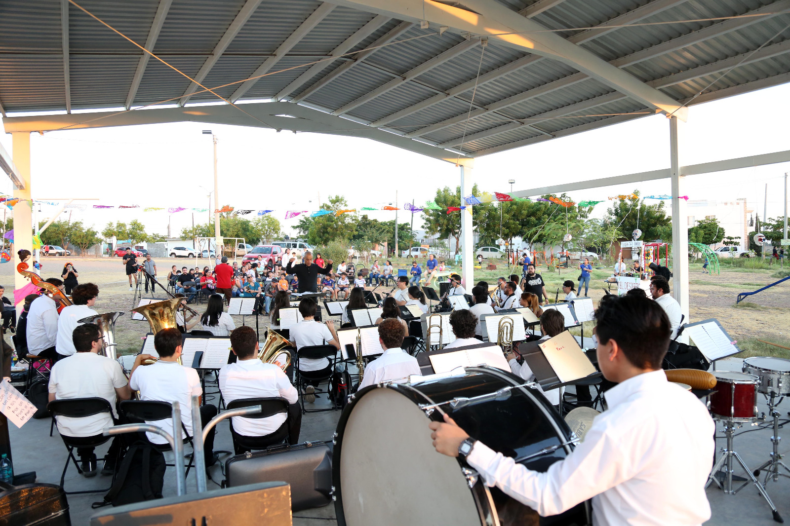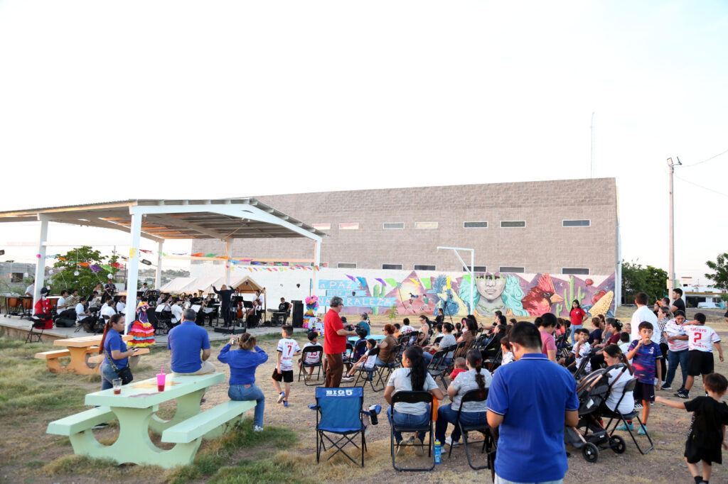 Culiacán, Sin.– El fraccionamiento Prados del Sol se unió al programa “El Arte Alegra tu Parque”, que lleva a cabo el Instituto Sinaloense de Cultura (ISIC), en coordinación con el Patronato Parques Alegres, IAP, con la presentación de la Banda Sinfónica Juvenil del Estado que ofreció un variado concierto en el parque Prados del Sol del Desierto, dirigido por el maestro Diego Rojas.