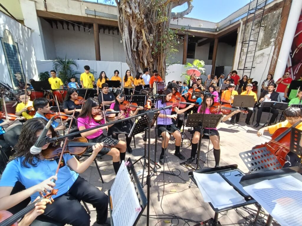 Mazatlán, Sin.- En un ambiente de entusiasmo, aprendizaje y celebración musical, el Instituto Sinaloense de Cultura, a través del Sistema Estatal de Fomento Musical y su Delegación Sur, llevó a cabo el Gran Concierto de Cierre del Curso de Dirección Orquestal, teniendo como escenario el patio del recinto, donde la Orquesta Sinfónica Infantil y Juvenil Paseo del Centenario ofreció una destacada presentación ante un nutrido público.