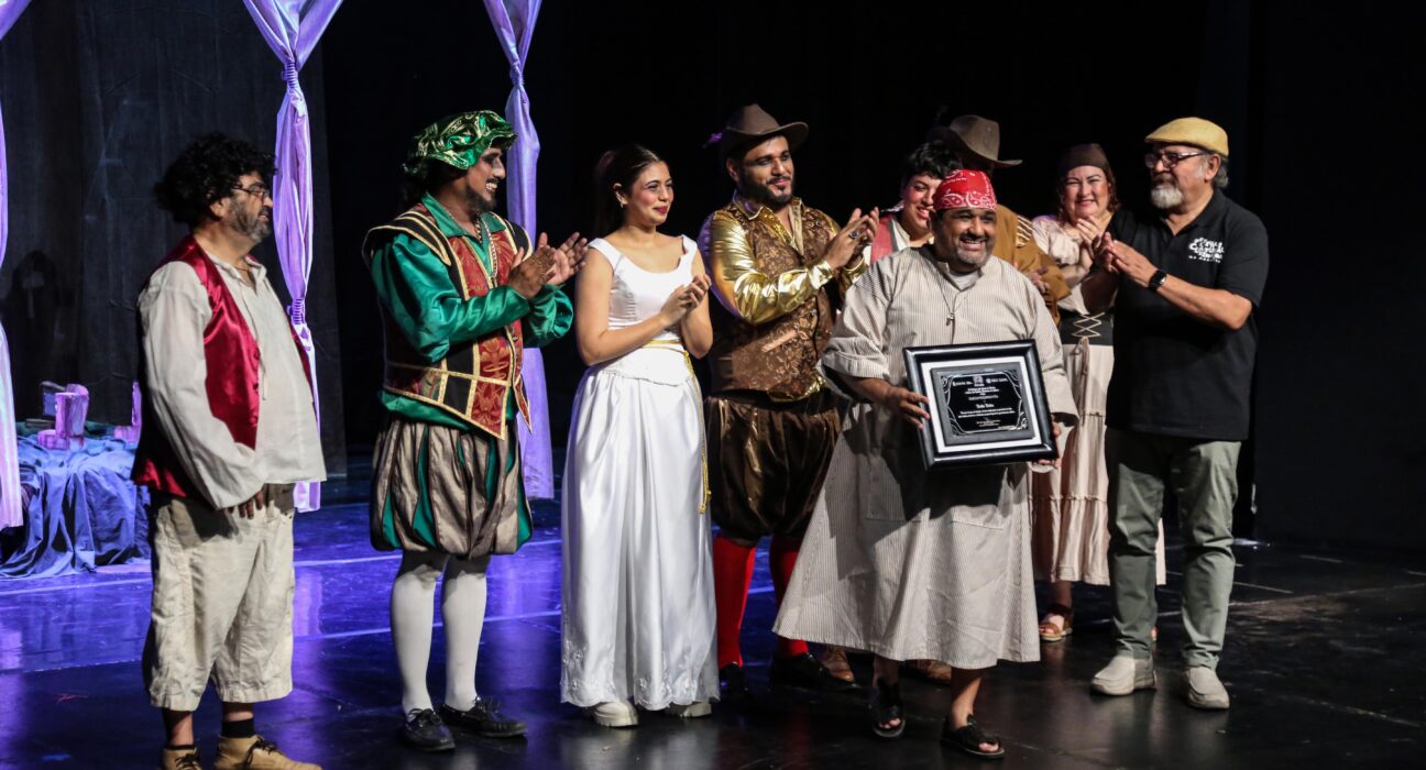 Previo a la entrega del reconocimiento, la compañía sinaloense presentó como parte del Festival Cultural Sinaloa la puesta en escena Don Juan Chilorio, una divertida versión que combina la obra clásica de José Zorrilla con la idiosincrasia del sinaloense, teniendo como personajes centrales, a Don Juan Chilorio y a Don Luis, que pelean por el amor de una coqueta Doña Inés.